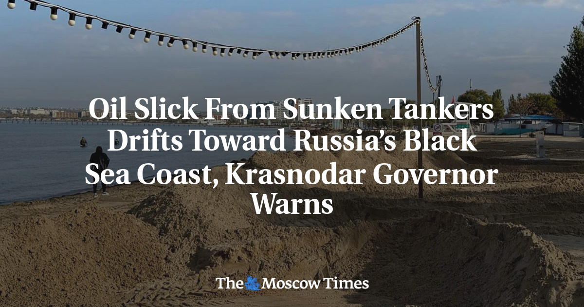 A massive oil slick containing around 900 metric tons of fuel oil from the December 2024 sinking of two aging tankers is drifting toward southern Russia’s Krasnodar region, regional officials said Thursday.
